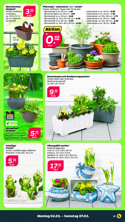 Bitte beachten Sie, dass dieser Text automatisch generiert wird und möglicherweise Fehler enthältBlumenkasten Pflanztopf, -untersetzer oder -schale* hä + Farben Anthrazit, Taupe oder Terracotta Farben Anthrazit Blumentopf o ca. 20 cm = 49 Untersetzer o ca. 19 cm = 0.69 32 Blumenschale o ca. 30 cm Untersetzer o ca. 34 cm =1.49 und Braun, Stück ca. 37,5 x 17,7 x Blumentopf o ca. 30 cm = 49 Untersetzer ca. 28 x 28 cm= 79 26 cm, Material Blumentopf ca. 33 x 33 x 26 cm = 4.49 Untersetzer 9 ca. 29 cm = 1.99 Kunststoff Blumentopf o ca. 40 cm = 4.99 Untersetzer ca. 34 x 34 cm = 2.49 Blumentopf ca. 40 x 40 x 30 cm = 6.49, Untersetzer 9 ca. 39 cm = 2.49 ny ge \Y Er + a MDF. Farb- 69 Z PRE variante ce DN AL XN Fi En 5 LES > N à | à nt De de Ni Blumenkasten mit Bewässerungssystem* fi À Farben Weiß oder Anthrazit, i Material Kunststoff, «| ca. 48 x 19 x 19 cm SH Nr 1 th à A Eh) N ve Stick We À |? A ; 5 Ns je Re = a ll Fe AU à 2 Ben ER Pi { EE CAT SW GARDEN Blumentopf hängend: Er en braun, ee ca: 22x13 cm, Mate- rial Kunststoff, Metall El | = Dekofigur Pflanzgefäß maritim* Frosch* Material Magnesia, versch. Ausführungen, Material rund ca. 27,5 x 28 x 20 cm, { Polyresin, H bis max. 16,2cm eckig ca. 32x 23x 13 cm, Seestern ca. 32,5 x 15 x 25,5 cm, I] Muschel ca. 29,5 x19,5 x 21,5 cm My Le 99 Stück It Stück Ve = V ge = À : 1) 4 a 4 À | be. 5 wu Fr flens #7 pes D & SA Le ‘4 74 | & E D © À 4 2 \ Y 2 une === N) Montag 02.03. - Samstag 07.03. &