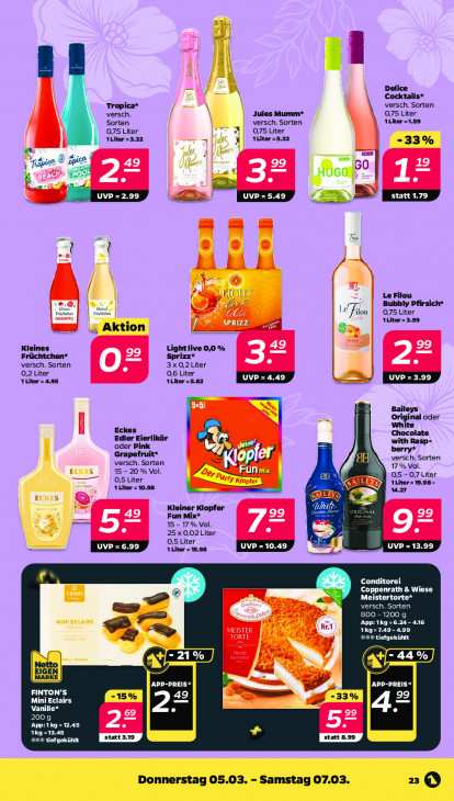 Bitte beachten Sie, dass dieser Text automatisch generiert wird und möglicherweise Fehler enthältDelice Cocktails* versch. Sorten Tropica* versch. Jules Mumm* 0,75 Liter Sorten versch. Sorten Liter =1.59 0,75 Liter « 0,75 Liter 1Liter=3.32 1Liter =5.32 =33% EN zoiet | Ti 3 Höca > ML 49 or EV EED Fan À CIEL Le Filou x See z Bubbly Pfirsich“ rächen | ir 1 Piou 0,75 Liter 1Liter=3.99 _—— z Aktion Kleines Light live 0,0 % Früchtchen* Sprizz* versch. Sorten 3x0,2Liter 0,2 Liter 0,6 Liter 1 Litor = 4.95 ALiter =5.82 OA 49 ne uvi 99 ori Baileys ig! Eckes Whi Bo oder Edler Eierlikör Chocolate with Rasp- oder Pink berry* Grapefruit* {100 f versch. Sorten versch. Sorten EN 17 % Vol. 15 - 20 % Vol. 0,5 Liter AB ,* 0,5 -0,7Liter 1 Liter = 10.98 2 ALiter = 19.98 1.27 Ey U fe P Fun Mix* Kleiner Klopfer fau 15-17 % Vol. 25 x 0,02 Liter 0,5 Liter hr 1 Liter = 15.98 uvi 49 UVP = 13.99 & CO CUS] I CT enrath & Wiese A Meistertorte* ver h. Sorten ae -1200 g 24-416 kg 1k ro [ro Vi Et GE (a ARKE IGEN CCE TES) Pr Ts hd CE -15% 49 “33% 99 ENT Ec Vanille‘ 2009 App:1kg=12.45 KLE] 45 FEU statt 319 statt 8.99 Donnerstag 05.03. - Samstag 07.03. =O