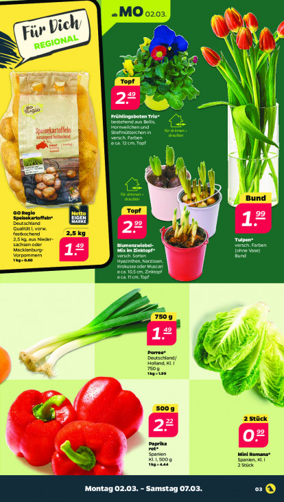 Bitte beachten Sie, dass dieser Text automatisch generiert wird und möglicherweise Fehler enthältN | e ch eN re u r U \ AM N a \ N f me DS N | VA | N ij ee > NS À 4 y pa Kk D A Be Frühlingsboten Trio* MATE UC bestehend aus Bellis, Speisekartoffeln Stiefmütterchen in | Nt el ee EI Pte NA . tes u | fia " N; R Fi il | | nn. SE if ET jw Ee) C@ a NS 4 CAT [70371 Ya Pi Tulpen* 49 Blumenzwiebel- NÉE Cu) NET] DIE pre Bund (ohne Vase) Hyazinthen, Narzissen, Krokusse oder Muscari 0a. 10,5 cm, Zinktopf oca. 11cm, Topf Den 2 ET Porree* Holland, KI. | Deutschland/ À 7509 4 1Kg=199 4 Paprika rot* À Spanien Mini Romana* 1Kg=4.44 KI.1, 500 g 2 Stück ‚Spanien, Kl. | \ Montag 02.03. - Samstag 07.03. 03