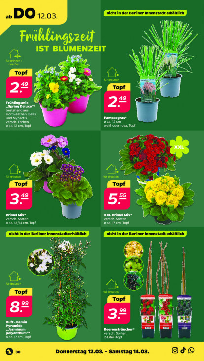 Bitte beachten Sie, dass dieser Text automatisch generiert wird und möglicherweise Fehler enthältnicht in der Berliner Innenstadt erhältlich ab DO 12.03. ES I ETAT vzeil ki IST BLUMENZEIT G Ean KEE AD 7 | ropf | RENTE NL da ei [Topf | 4 Vin Br Ee aad En bestehend aus „Spring Deluxe“* Vin CAES und Myosotis, Pampasgras* CEE OU oca.12cm © ca. 12 cm, Topf PRE ALi NS @ “à ir Eger ee 4 ef 5 > à Sa De 21 D as Ic Fa 4 He Primel Mix* XXL Primel Mix* NEE ch} et ec} o ca. 13/14 cm, Topf CERTES u nicht in der Berliner Innenstadt erhältlich 5 mn erhältlich vi ch Kz Re. Ne: 1 @ QE x“ EM 02 \ j | | cs [| ij |, = N Keen \ für drauen fl | Es | | [Topf | [Topf 87 99 Duft-Jasmin er Pyramide | us | „Jasminum polyanthum“* NE CH Beerensträucher* EIER Ze ac. Bann} © Donnerstag 12.03. - Samstag 14.03. Edo