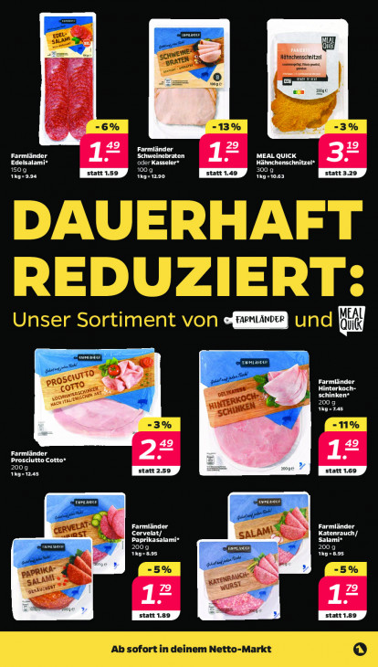 Bitte beachten Sie, dass dieser Text automatisch generiert wird und möglicherweise Fehler enthältwen Anchenschnitzel grd, A De re ons 1009 = EI moge ik RE 49 29 19 Farmländer Farmländer Schweinebraten MEAL QUICK Edelsalam oder Kasseler* Hähnchenschnitzel* 150 g LUE 300 g TCE 1kg=12.90 T'ES TAR DER Farmländer Hinterkoch- ETAT Ach 200 g 1kg=7.45 49 Farmländer Prosciutto Cotto* 1° 200g 20e 1Kg=12.45 EX ziek lj ji Farmländer Farmländer CT DATENT TI Paprikasalami* Salami* 200g 200 g 1kg=8.95 1Kg = 8.95 ru uch 4! Lait" Le > 17 17 Do € 2e EED [statt 1.92