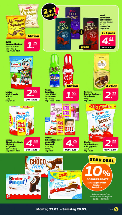 Bitte beachten Sie, dass dieser Text automatisch generiert wird und möglicherweise Fehler enthält| get DK a locken we D) = | EN &s |) | EDEL EDEL 7 de NN A. | Be 98 79 | 75% statt 7.47 % 4 ” If ) Winirpreno®' S N j En 2 (@ 2 e! I ei = Se, Si) 2 Al :Q, LT 0 LE 99 .— en LIS his gaa Preis Ce Kinder A vande” I OS SPA Bons” „Lite = SPAI 5 N rd Be sr” 75 99 CHOCO za <» EE = _— ee JE 7 TESTEN! 10% Kinder - n © L} SOFORTRABATT auf alle gekühiten kinder = Produkte pon Rabattabzug erfolgt an der Kasse. Gültig vom 23.03. - 28.03.26. Montag 23.03. - Samstag 28.03. 13