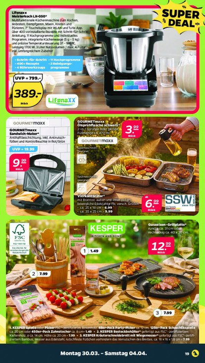 Bitte beachten Sie, dass dieser Text automatisch generiert wird und möglicherweise Fehler enthältLifenaxx Meisterkoch LX-050* Muttifunktionale Küchenmaschine Züm Kochen, Anbraten, Dampfgaren, Mixen, Kneten und Pürieren, 7“ Touchdisplay mit WLAN und TuYa-App, sa über 400 vorinstallierte Rezepte mit Schritt-für-Schri 4a ‚Anleitung, 11 Kochprogramme und individuelles 1 Programm, integrierte Küchenwaage (5 9 - 5 kg) und präzise Temperatursteuerung 37 - 1809C, Leistung 1700 W, 3 Liter Nutzvolumen / max. 4,7 Li in umfangreichem Zubehör eu L A m = E vu = [uve= 702.) en IK 5 Lifena E LE GOURMETmaxx maxx COTES EAN Et 2 29 GOURMETmaxx 2-in-1 sprühen Oder gießen N Sandwich-Maker* © Cp, eee an ick Antihaftbeschichtung, inkl. Antirutsch- füBen und Kontrollleuchte in Rot/Grün L sourmermanx | Den re ee FETES en E 7) RN NS Eer N dr 3 = En © SL ERNA B FA er 7 | => D. 2) iet Eed mit Bratrost, auen und innen polieren Ne 99 En SSW/: RE. bewegliche SC EE since 1954 ca. 25 x 18 cm = 6.99 sch AN ca. 35 x25 cm=9,99 Stück FRA en = LA ZI Gusseisen-Grillplatte* CRT ‚ca. 31cm odelig u. - Kk recht@ekig ca. 40 «20 cm son pe FSC lm NN no 99 IN .. A} .49 An Stück 5 \ . EN L N IS SS u = = —— 6 7.99 u > N |E — = En = > 8 + à 3 a Pr Fr > € we — eu Le CC OT a OC bei ca. 20 cm oder 450er-Pack Zahnstocher ca. 8cm-1.49 + 2. KESPER Besteckbehälter* gefertigt aus FSC’-zertifiziertem Kiefernholz, o ca. 14 cm, Höhe ca. 20cm=7,99 + 3. KESPER Kräuterschneidebrett mit jegemesser* gefertigt als FSC*-zertifi- Ziertem Bambus, Messer aus Edelstahl, rutschfeste Füßchen verhindern das Verrutschen des Brettes, ca. 16 x 16 x 1,8 cm =7.99 Montag 30.03. - Samstag 04.04. LE
