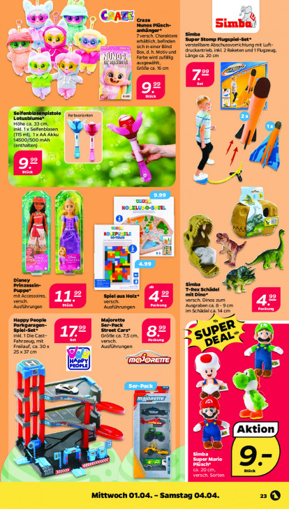 Bitte beachten Sie, dass dieser Text automatisch generiert wird und möglicherweise Fehler enthältel) CAES qu Plüsch- Sim anhä * 7 versch. Charaktere Q 9) 3 Sen erhältlich, befinden ee Flugspiel-Set* GEEN sich in einer Blind verstellbare Abschussvorrichtung mit Luft- Box, d. h. Motiv und druckantrieb, inkl. 2 Raketen und 1 Flugzeug, NUNOS = Farbe wird zufällig Länge ca. 20 cm M ausgewählt, WS à ur Bet Größe ca. 16. cm HD pi . ed we EE] Da LE LE Fr 4 De PO cam Er he A CL Seifenb! PN ie Lotusbli Farbvarianten Höhe ca. 33 cm,” inkl. 1x Seifenblasen = (15 ml), 1x AA Akku Ne 14500/500 mAh qe (enthalten) kb ji el = a LE) Er I’ de Pr > vang, an SS 5 HO_ZLUS -S>TEL u \ I. 8 64 | > HM DA N ı hi HO_ZPUZZLE a a N e 27 Gt FAT x à Disney = Prinzessin- een si Puppe* T-Rex Schädel x mit Accessoires, LE) Spiel aus Holz* LE mit Dino* versch. versch. versch. Dinos zum Ausführungen Stück ‚Ausführungen Packung Ausgraben ca. 8- 9 cm cn im Schädel ca. 14 cm CT] Happy People Majorette Parkgaragen- EE 5er-Pack EE] R = Spiel-Set* A Street Cars* > UP inkl. 1 Die Cast- Gröfe ca. 7,5 cm, CE Fahrzeug, mit versch. 7 Ar“ 2) Freilauf, ca. 30 x Ausführungen 25x37 cm PA a GNU Di Er) À. 2 Ser-Pack ES LEE | UR m zen = | IE [aktion] nr | 6 Simba LES Plüscl Super Mario 2D, I) versch. Sorten ca. 20 cm, Mittwoch 01.04. - Samstag 04.04. =O