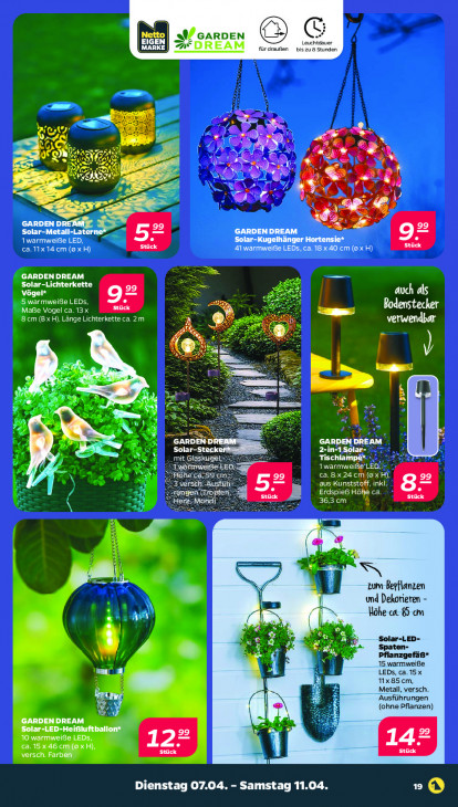 Bitte beachten Sie, dass dieser Text automatisch generiert wird und möglicherweise Fehler enthältG A GARDEN © Leuchtdauer Zie für draußen bis zu 8 Stunden GAY KEN RX p de A Pe) à AN 5 = R N u bee D N N (RT Cie SOS A. AW FA: 4%) =; 2 [1.7.7770] Solar-Metall-Later > GARDEN DREAM Solar-Kugelhänger Hortensie* PEUT EC 41warmweie LEDS, ca. 18 x 40 cm (0 x H) ca.11x 14 cm (0 x H) GARDEN DREAM Solar terkette IE | CUS 5 warmweiße LEDs, Dae Ag Maße Vogel ca. 13x |. 8cm (Bx H), Länge Lichterkette ca. 2m verwendbar BB ES 4 4. 22, N 72 NY + GARD CENT Solaı ER TE Bt VIN Kle 1warmweiße‘LED} CE ca. 8x 24cm (ox H) Bl aus Kunstst ‚inkl, NUS EAST 36,3 cm = hi. — zum Bepflanzen und Dekorieren - A I — Höhe -ca-85- cm Lu [À A Ge tg: CU Solar-LED- Fr Spaten- A LP Pflanzgefäß* _ 15 warmweiße u} LEDs, ca. 15x 11x85cm, Metall, versch. beim ‚Ausführungen Nid s (ohne Pflanzen) 5 4 DEN DREAM ETS -LED-Heifsluftballon* E iGe LEDs, (RL a H) METRE Dienstag 07.04. - Samstag 11.04. 1 ©