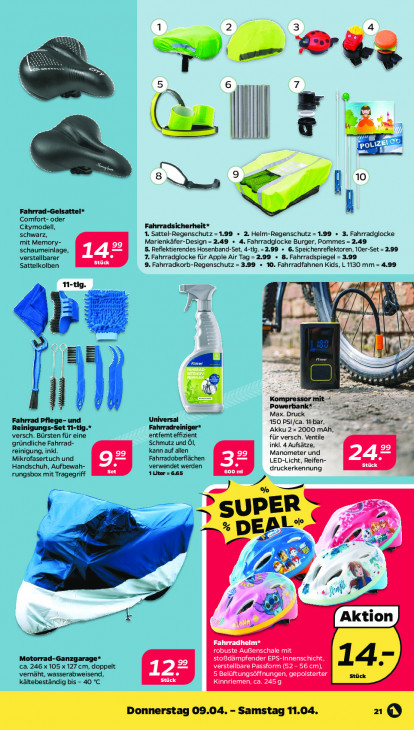 Bitte beachten Sie, dass dieser Text automatisch generiert wird und möglicherweise Fehler enthältes LA ei zee I? 9 CN 10 Fahrrad-Gelsattel* u’ Comfort- oder Citymodell, Fahrradsicherheit* 1. Sattel-Regenschut: ,99 + 2. Helm-Regenschutz=1.99 + 3. Fahrradglocke schwarz, mit Memory- 93 Marienkäfer-Design = .49 » 4. Fahrradglocke Burger, Pommes = „49 schaumeinlage, 5. Reflektierendes Hosenband-Set, 4-tig.=2.99 + 6. Speichenreflektoren, 10er-Set = 2.99 verstellbarer 7. Fahrradglocke für Apple Air Tat +_ 8. Fahrradspiegel = Stück Sattelkolben 9. Fahrradkorb-Regenschutz=3.99 « 10. Fahrradfahnen Kids, L 1130 mm = 4.99 11-tg. 1 7 7 ‚5 iS LR ere mr ON (U) \ ii | Ci IN —— | > Ni hdd Pr Kompressor mit: fi M Powerbank* mnd Max. Druck Universal Fahrrad Pflege- und Fahrradrei 150 PSI/ca. Wbar, Reinigungs-Set 11-tig.* Akku 2x 2000 mAh, versch. Bürsten für eine entfernt effizient für versch. Ventile gründliche Fahrrad- Schmutz und Öl, kann auf allen inkl. 4 Aufsätze, EE] reinigung, inkl. 99 Manometer und Mikrofasertuch und Fahrradoberflächen LED-Licht, Reifen- es Handschuh, Aufbewah- verwendet werden druckerkennung tic rungsbox mit Tragegriff 1 Litor = 6.65 CET Ee e) UPER ra A > Lo DER 7 RP 1 < > > 4 Fahrradhelm* robuste AuBenschale mit Motorrad-Ganzgarage* stoßdämpfender EPS-Innenschicht, ca. 246 x 105 x 127 cm, doppelt verstellbare Passform (52 - 56 cm), 14 vernäht, wasserabweisend, 5 Belüftungsöffnungen, gepolsterter Stück kältebeständig bis - 40 °C NEUERE IL Donnerstag 09.04. - Samstag 11.04. 1©Q