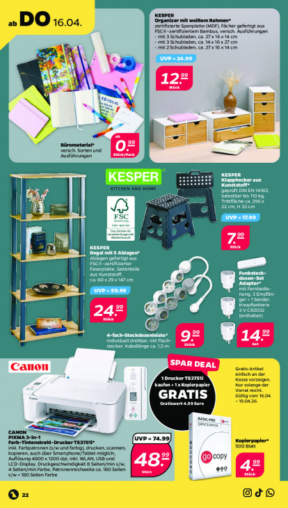Bitte beachten Sie, dass dieser Text automatisch generiert wird und möglicherweise Fehler enthältKESPER Organizer mit weißem Rahmen* zertifizierte Spanplatte (MDF), Fächer gefertigt aus FSC -zertifiziertem Bambus, versch. Ausführungen » mit 3 Schubladen, ca. 27x16x14 cm - mit 3 Schubladen, ca. 14x 16x27 cm 8 » mit 2 Schubladen, ca. 27x 16 x 14. cm Ge Ver À 12° Er nn: Is == en 3 Büromaterial* = versch. Sorten und Ausf rungen Stück/Pack — COTE KESPER Klapphocker aus D Kunststoff* jeprüft DIN EN 14183, belastbar bis 110 kg, Trittfläche ca. 296 x 22cm,H 32cm Ri LS 0 pn FS ep voe non 5 > 2 | Das Zeichen fir LA) ? verantworungsvoße. Vieldhirtschat, 7% 5 A < KESPER Stück = Regal mit 5 Ablagen* ‚Ablagen gefertigt aus FSC®-zertifizierter 11 EEE CRUE aus Kunststoff, Funksteck- ca. 60 x 29 x 147 cm 4 -Set Adapter* > mit Fernbedie- > nung, 3 Empfän- ger +1 Sender, u © Knopfbatterie LE Ce 3 VCR2032 | Stück CE) | — 4-fach-Steckdosenleiste* individuell drehbar, mit Flach- On W 1a: stecker, Kabellänge ca. 1,5m Er SPAR DEAL Canon 1Drucker TS3751i De REL 27072 Canon GRATIS Gratiswert 4.99 Euro 22 BASICPRO OFFICE PAPER CANON PIXMA 3 Farb-Tintenstrahl-Drucker TS3751i* inkl. Farbpatronen (s/w und farbig), drucken, scannen, A kopieren, auch über Smartphone/Tablet môglich, 99 jsung 4800 x 1200 dpi, inkl. WLAN, USB und (@Dcopy 99 LCD-Display, Druckgeschwindigkeit 8 Seiten/min s/w, 48 4 Seiten/min Farbe, Patronenreichweite ca. 180 Seiten Er | @00 s/w + 180 Seiten Farbe Er