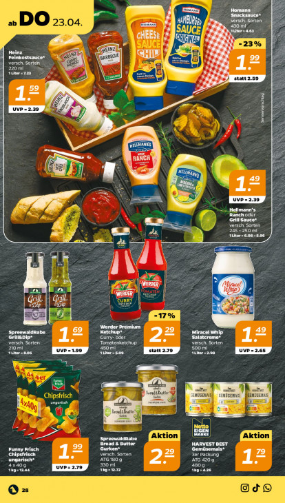 Bitte beachten Sie, dass dieser Text automatisch generiert wird und möglicherweise Fehler enthältie BEL LEE ou Ri M tes SE) Fr Liter= CHEESt ei Pel EX FA + Heinz Se #3 Feinkostsauce* NZ N BARBECUE) CHILUP =. CPR 99 MR cu) ANS 1 CL er 220 ml a de Ned 2) mine statt 2.59 5 bf Dre ke 12 € I DS Luve-2.39 À » Serviervorschlag 5 al rn RANCH an 49 a Er ge N FR Hellmann’s Ranchoder Grill Sauce* Ie la Pr Aliter = 6.08-5.96 245 -250 ml Er "re PA SE zet IE Li TR Miracel wi THERE Ruh) il Ss ED) EI h Fr ger! Premium 49 SpreewaldRabe Miracel Whip CT 12 Curry- ee = Salatcreme* versch. Sorten ROUE CE CT) ME Cul 210 mi 450 ml 500 mi AT Alter = 5.09 ner} = u. S Id: és = 1) bread & Butter wisten ant EMÜSENAIS GEMÜSEMAIS! MÜSEMAIS. DE sir ca EE). et Cen; rend Butt Goes EU ge u oma ann EIGEN EEE EIERN HARVEST BEST Funny Frisch Gurken* 29 Gemüsemais* 79 Chipsfrisch ES versch. Sorten 3er Packung DTe ATG 180 9 ATG 420.9 ri 330 ml 480g 1kg=12.44 Ke 1Kg=4.26