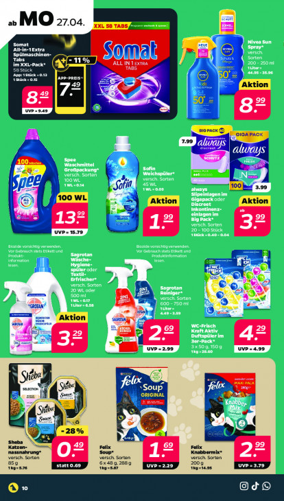 Bitte beachten Sie, dass dieser Text automatisch generiert wird und möglicherweise Fehler enthältab MO 27.04. cu XXL 58 TABS, Somat NEUE All-in-1Extra D ETES R me Tabs im XXL-Pack* Gi 58 Stück ALL IN 1 Qu 18tück = 0.15 ET er RE APP-PREIS: 49 2 Aktion zE 8= BIG PACK © is GIGA PACK 7.99 P7/ US CLS Sje 1100 3.99 100 WL EN Aktion Aktion 99 À @ o De UVP= 15.79 er 1657 Be DE Ir a Fo WA) NN et GROW & „ROAD CA wann malasrdur Aktion ARTAN 2] 69 29 29 ee 2 ve UVP =2.99 UVP=4.99 == Sit SELECTION Siebe A oup A0 00g 14 ORIGINAL 7 IVA N Seve Ed Seuce Kd S © "28% sne NER VA Katzen- Felix Felix versch. Sorten nassnahruı oJ Soup* versch. Sorten versch. Sorten Knabbermix* 2e 859 statt 0.69 6x48 9, 2889 2009 UVP =3.79 1kg=5.76 1Kg=5.87 UVP=2.29 1kg=14.95