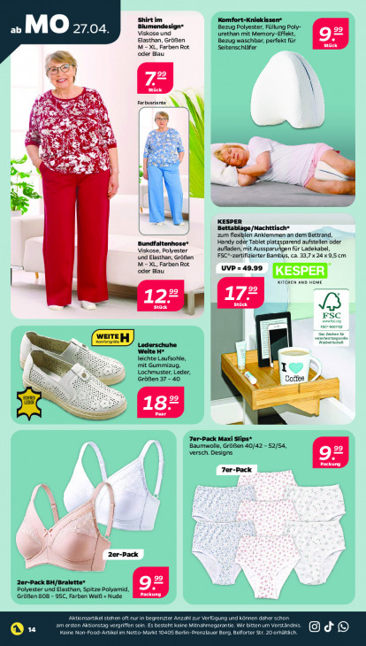Bitte beachten Sie, dass dieser Text automatisch generiert wird und möglicherweise Fehler enthältShirt im Komfort-Kniekissen* Blumendesign* Bezug Polyester, Füllung Poly- ‚MO 27.04 Viskose und urethan mit Memory-Effekt, 9 Elasthan, Größen Bezug waschbar, perfekt für Er M - XL, Farben Rot Seitenschläfer oder Blau N \ 72 Stück \ en; rs À € EN RE EL Le sel À À a Gn he re ES RE VS > 1 > 55 bd il De kad 22 d F L 5 KESPER \ \ À u Bettablage/Nachttisch* zum flexiblen Anklemmen an dem Bettrand, Bundfaltenhose* Handy oder Tablet pla sparend aufstellen oder aufladen, mit Aussparu en für Ladekabel, Viskose, Polyester FSC*-zertifizierter Bambus, ca. 33,7 x 24 x 9,5 cm und Elasthan, Größen M - XL, Farben Rot oder Blau UVP = 49.99 CEE KITCHEN AND HOME 99 pe Stück Een FSC sance FSC" Noot22 Ze veranter am st Lederschuhe Weite H* leichte Laufsohle, mit Gummizug, Lochmuster, Leder, GröBen 37 - 40 Coffee NET == Paar 7er-Pack Maxi Slips* Baumwolle, Größen 40/42 - 52/54, versch. Designs CE DEC 7er-Pack & a San 2er-Pack — 2er-Pack BH/Bralette* Polyester und Elasthan, Spitze Polyamid, GröBen 80B - 95C, Farben Wei + Nude Er Aktionsartikel stehen oft nur in begrenzter Anzahl zur Verfügung und können daher schon ‚am ersten Aktionstag vergriffen sein. Es besteht keine Mitnahmegarantie. Wir bitten um Verständnis. 14 @Od® Keine Non-Food-Artikel im Netto-Markt 10405 Berlin-Prenzlauer Berg, Belforter Str. 20 erhältlich.