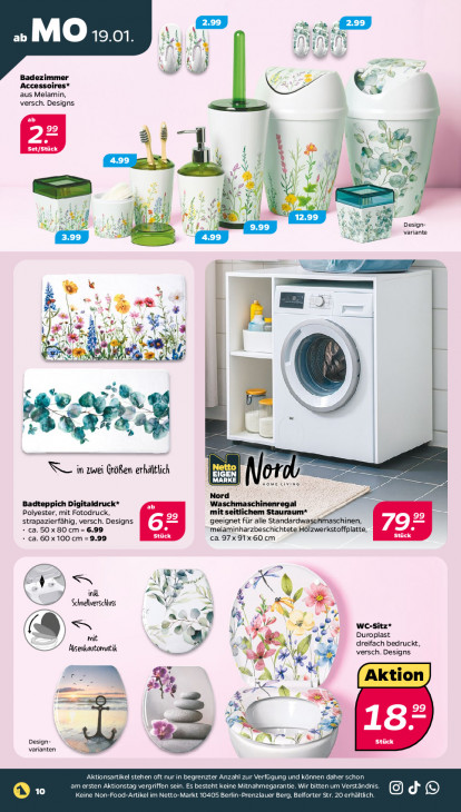 Bitte beachten Sie, dass dieser Text automatisch generiert wird und möglicherweise Fehler enthältRe) À IG ‚MO 19.01 Ÿ À A 4 À we ) f ! Nb hel Bade: mer Zo Acce: res* aus Melamin, versch. Designs S CE À 1 # re 4.99 { Ri y | \ PL: \ N IE Y 74, #, 3 ur ù Pr Ke x Design- uy # variante 4.99 se — & Wk e À \e a 2? =d + Sr et Ÿ ER HE A fi AR, ; ee Li Gi A + mn Lin zwei Größen edi IE CAT 0 wouwe Livine Badteppich Digitaldruck* en see renal Polyester, mit Fotodruck, mit seitlichem Stauraum* strapazierfähig, versch. Designs geeignet für alle Standardwasel aschinen, ca. 50 x 80 cm= 99 CE melaminharzbeschichtete Holzwerkstoffplatte, LE ca. 60 x 100 cm = 9.99 ES ca. 97 x 91x60 cm CE — ink. Schnellverschluss £ Y VAN 21 WC-Sitz* SSN, Se mit ‘ € Duroplast Asenkautomatik à dreifach bedruckt, versch. Designs ar hd x TR WA re | DS se > # a 5 AN € à af 187 “ea rs Design- Stück varianten Aktionsartikel stehen oft nur in begrenzter Anzahl zur Verfügung und können daher schon 10 am ersten Aktionstag vergriffen sein. Es besteht keine Mitnahmegarantie. Wir bitten um Verständnis d © Keine Non-Food-Artikel im Netto-Markt 10405 Berlin-Prenzlauer Berg, Belforter Str. 20 erhältlich.