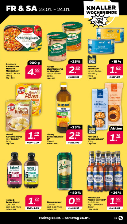 Bitte beachten Sie, dass dieser Text automatisch generiert wird und möglicherweise Fehler enthält> en HUE ee PEN ES 5 A fa À amat ND dd N Dreistern ES Hausmacher Harzer NAVITO Mahlzeit 99 Wurstkonserve 69 Thunfisch* Menüschale* im Maxiglas* versch. Sorten versch. Sorten versch. Sorten ATG 135 9 900 g 1kg= 5.54 1kg=8.97 3009 1859 1kg=807 D Karts KOKOS a ee ÔRTCHEN — Ada Tay ze THO, Kartoff I del j He 49 Pfanni Thomy oder Knödel* Kartoffel Püree Sonmenblumen- FINTON’S 750 ml Kuchengebäck* 12 1kg=613 2439 ALiter =3,05 1kg=8.95 200 g IE ER u CU a 2 TE pi LE TAMI a Sr sera (TIOX à ns 59 NORDGOLD 99 Hohes C 6x 0,5 Liter Pilsener oder Gold* 0,33 Liter Super Shots* 0,5 Liter Staropramen* zzgl. 0.25 Pfand zzgl. 0.25 Pfand 3 Liter zzgl. 1.50 Pfand 1 Liter = 5.42 1 Liter = 118 1 Liter = 0.66