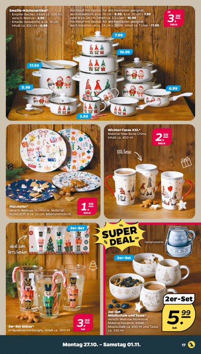 Bitte beachten Sie, dass dieser Text automatisch generiert wird und möglicherweise Fehler enthältEmaille-Küchenarti in Kochtopf mit Deckel, für alle Herdarten geeignet, BEE te tal ER OP ) auch Induktion, © ca. 16cm -5.99, 0 ca. 20.cm = 7.99 versch, Motive= 3.99! ‚oder © ca. 24 cm, Inhalt.ca. 3,9 Liter - 10.99 + Emaille-Kasserolle, Ee Kochtopf mit Deckel, für alle Herdarten geeignet, 32 Inhalt ca. 850 ml26.99| auch Induktion, @ ca. 24 cmx 20m, Inhalt ca. 7 Liter - 17.99 Stück DEZ £ À W La & À mn 8 à 4 Fr: 1 À Â à N ex n ei I 6 > > # BR RL re sé 3 À — =S 111 Wichtel-Tasse XXL* = Material New Bone China, sn à Inhalt ca. 450 ml 2e gr! È Es ve Br 8 1 LAS N vr . dy > R zu wann <: 2 Ex À > ) N ed ie) < EE) Ad platzteller* rs x MT lala MNM td Stück Kunststoff, o ca. 33 cm, lebensmittelecht En eg Designvariante e ideal zum : Verschenken ad NLA 8 EE: Na "> LE = 8 Er | de a N “+ in [2er-Set) Mi = ar ep == = J 5 4 4 Müslischale und Tasse* ME eu et Material Keramik, Inhalt: r-Set Gläser* Müslischale ca. 450 ml und Tasse in Nussknackerdesigns, Inhalt ca. 300 ml ca. 330 ml Montag 27.10. - Samstag 01.11. ur