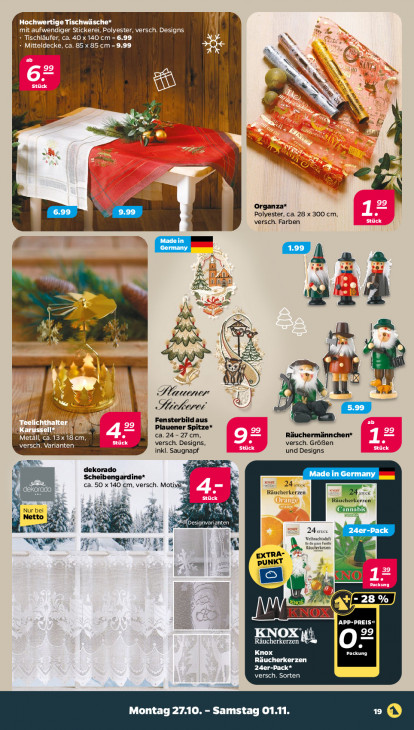 Bitte beachten Sie, dass dieser Text automatisch generiert wird und möglicherweise Fehler enthältTischwäsche* mit aufwendiger Stickerei, Polyester, versch. Designs ischläufer, ca. 40 x 140 cm =6.99 [£a À. Mitteldecke, ca. 85x 85cm -9.99 N L lle Ne Ss If & | A; N IS |, u u f N SE E as, € N Organza* 6.99 9.99 Polyester, ca. 28 x 300 cm, versch. Farben LE ED A 2 2 se “ x LS > NS 148 ee IA A ES NIV NE — N dl Namene pe he 4) Be Hi cherel Fensterbild aus à a | Plauener Spitze* Metall, ca.13x 18 cm, ca. 24-27 cm, Räuchermännchen* versch. Varianten versch. Designs, versch. Größen inkl. Saugnapf und Designs axe za Zu dekorado Scheibengardine* Le Made in Germany = ca. 50 x 140 cm, versch. Moti 24 dekorado Räucherkerzen griek l Pi. à Räucherkerzen! Nur bei Eb AA KA R Netto LS CEE à A EN st EN F 24 srux 24er-Pack ens ey x = zen a À 1 À ss en 1 EXTRA- € PUNKT NO CCE TTC] ale x oO? Knox Packung Räucherkerzen 24er-Pack* MCE Cu) Montag 27.10. Samstag 01.11. 1 ©