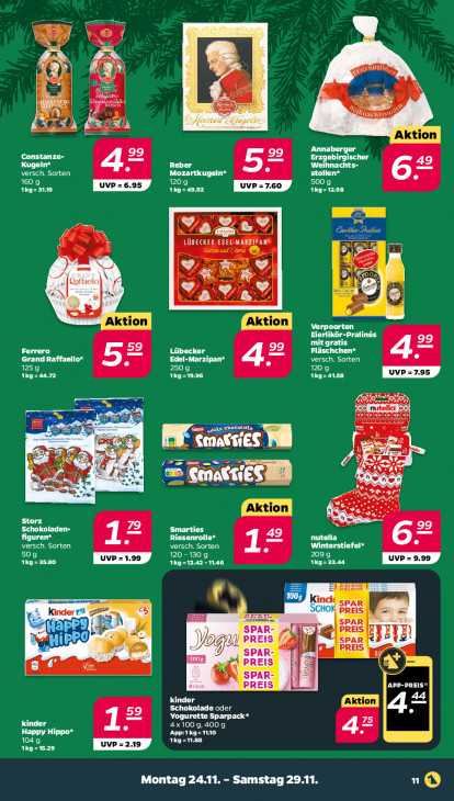 Bitte beachten Sie, dass dieser Text automatisch generiert wird und möglicherweise Fehler enthält| (=) D AEN = ey ka y Ef # N zE LAN EUE TS Kugeln* ER ech} Bean Ei = 160 g 1209 6= Leh Kd = ber m La 4 RZA a LÜBECK ZIPAN APE AA D 'affaelo| < M a Ÿ 4 @ Aktion Eierlikôr-Pralinés 99 Lübecker EE] mit gratis Fläschchen* Edel-Marzipan* versch. Sorten 1259 re arn LE 59 250g 1209 KD 3 1kg=19.96 De ge ka CRE CUS 12 [N Fe fe u ÿ Fa = D PAT > | æ a Dich VIN N P Cm RE € [33 LOS Ne es. 99 figuren* Schokoladen: Smarties Riesenrolle* nutella MUC versch. Sorten 1= Winterstiefel* Ep] 120 -130 g Pr] 1kg=35.80 LDC EL PPT 1kg= 33.44 fr ” (5) Kind spar PREIS > SPAR PPS F SPAR- HU PREIS EEE ) SPAR. PREIS En PREIS sé iS FA SPAR PREIS |APP-PREIS® kinder Schokolade oder ca|4 kinder 4x100 9, 4009 Yogurette Sparpack* 75 Happy Hippo* 12 et LT] [TPE LUTTE ES) EED Montag 24.11. Samstag 29.11. n©@