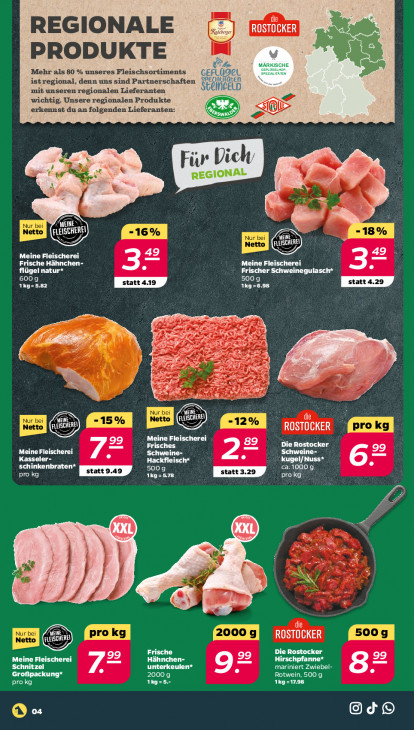 Bitte beachten Sie, dass dieser Text automatisch generiert wird und möglicherweise Fehler enthältREGIONALE Ws: PRODUKTE MÄRKISCHE Mehr als 80 % unseres Fleischsortiments istregional, denn uns sind Partnerschaften mit unseren regionalen Lieferanten wichtig. Unsere regionalen Produkte erkennst du an folgenden Lieferanten; ne. u Dich REGIONAL ar a > BR ee > HE N 49 Meine Fleischerei Frische Hähnchen- Meine Fleischei flügel natur* 32 Frischer Schweinegulasch* CE 500g Kd 1Kg-6.98 EEE jen Peer Paz EN Gi a 27 Ne fr rf! N ROSTOCKER Meine QE Meine Fleischerei ELCH Frisches Schweine- Die Rostocker 99 Kasseler- ré Hackfleisch“ 2: DOUTE schinkenbraten* 500g RC pro kg EED EL =578 LAS) eo Es N I 4 Le ROSTOCKER Frische Die Rostocker Schnitzel LOL TE Hähnchen- unterkeulen* rare mariniert Zwiebel- CRETE ra 20009 ge Rotwein, 500 g ES pro kg [T'ES 1kg=12.98 OK ©)
