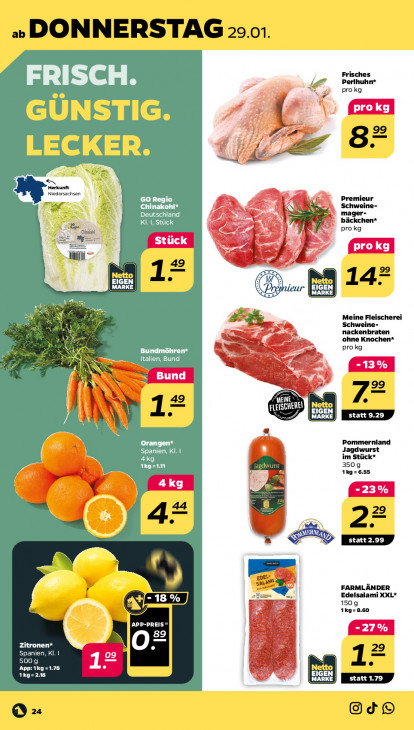 Bitte beachten Sie, dass dieser Text automatisch generiert wird und möglicherweise Fehler enthält+ DONNERSTAG 201. Frisches Perihuhn* pro kg 00 99 ZA # Od Herkunft. Niedersachsen Premieur mager- Schweine- we bäckchen* oh o prokg B il L mâ 49 13/1371 14 2 (MARKE EIGEN Dell HE Meine Fleischerei Schweine- nackenbraten ohne Knochen* pro kg S {À Ces ) a 99 49 EU IGEN A Ê JARKE Jagdwurst Pommernland im Stück* Jagd 3509 4 1kg=655 22 EED EDE SALAM ae FARMLÂNDER ? Edelsalami XXL* 1509 Gas 1kg=8.60 |APP-PREIS” Zitronen* No) Spanien, Kl. | 09 Pale 500g 1? Kd ED © ze @Od®