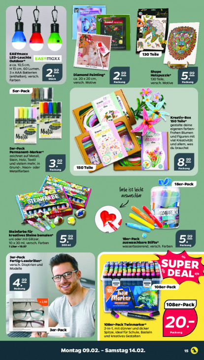 Bitte beachten Sie, dass dieser Text automatisch generiert wird und möglicherweise Fehler enthältn ja Er "si Fe Ca, | se à É' in 1 27 JE fe ‘à 0 EASYmaxx 130 Teile & LED-Leuchte moxx Wij Outdoor* we 4 oca.10,5cm, a H15 cm, 60 Lumen, 3 x AAA Batterien Shape 99 (enthalten), versch. Diamond Painting* Holzpuzzie* Farben ca. 20x20 cm, PJ 130 Teile, versch. Motive CC versch. Motive DEREN Ser-Pack S > get kn > oer % Y À au k Kreativ. x 4 en 150 Teile* SF « gestalte deine u eigenen farben- frohen Blumen Ca eat und Figuren mit BLUM viel Kreativität ‘a À Ger und allem, was 5er-Pack du brauchst Permanent-Marker* zeichnet auf Metall, Stein, Holz, Textil 99 und vielem mehr, in ie) |A Grund-, Neon- oder NS zp 8? Metallfarben ER 150 ‚Teile RE fr N 18er-Pack et farbe ist leicht Bw auswaschbar = = EN 5 2 ee Al hd TE” ge er BD 55 1 CHA \> el Ss v Le RS Steinfarbe fü NR kreatives Steine bemalen* 99 uni oder mit Glitzer, 1Ser-Pack Le 10 x 30 ml, versch. Farben auswaschbare Stifte* Sb 1Liter =19.97 EC wasserbasierend, versch. Farben EHE 3er-Pack % Fertig-Lesebrillen* versch. Dioptrien und à SE. Modelle SUPER EE È d ii es. 5 DEAL» (WER en Packung 108er-Pack ar er - er = en Er » 108er-Pack Twinmarker* 3er-Pack 2-in-1, mit dünner und dicker 20 Spitze, ideal für Schule, Basteln [Ser EE NU 4 und kreatives Gestalten Montag 09.02. - Samstag 14.02. A}