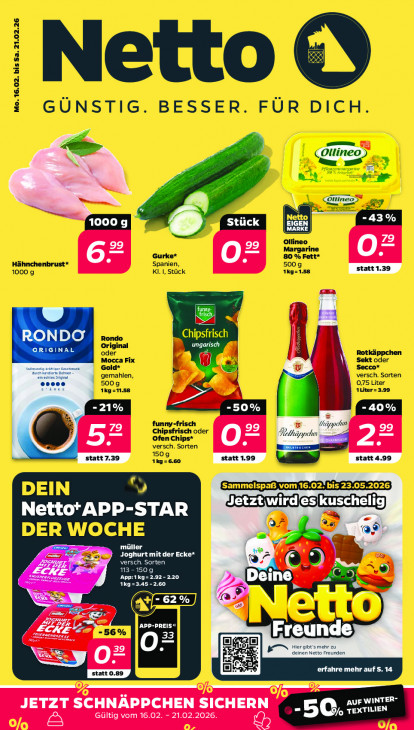 Bitte beachten Sie, dass dieser Text automatisch generiert wird und möglicherweise Fehler enthältdf = QT Er -43% MIT MARKE. O 79 he O= w JJ hi DT) 29 Wrs -21% oa -50% hek 99 vaäppdhn zE) Tea nd 5 79 D. statt 7.39 Hetztwirdes kuschelig Netto'APP-STAR @® 7 LUTTE Joghurt mit der Ecke* Ned had ef 0 113-150 g App:1kg=2.92- 2.20 De Ine kg =3.45 -2.60 mime SS (> ” =62 % CE 76 >: Le ln À APP-PREIS” Freunde Hie hr zu O= deinen Netto Freunden LE erfahre mehr auf S.14 BE JETZT SCHNAPPCHEN SICHERN AUF WINTER Gültig vom 16.02. - 21.02.2026. D 5. TEXTILIEN &