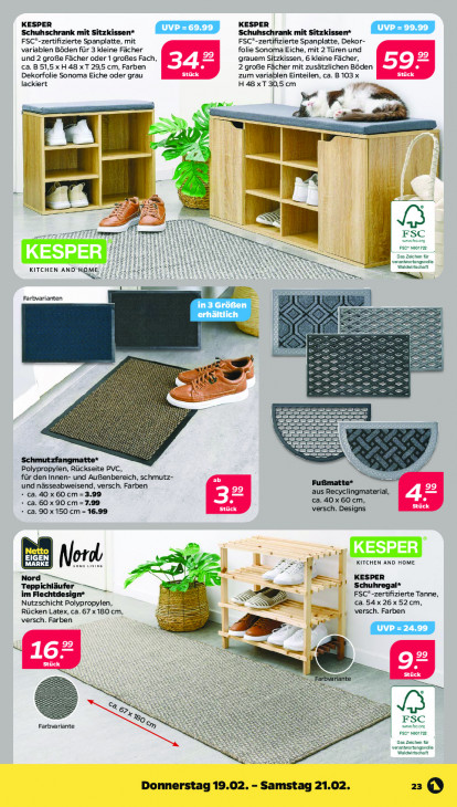 Bitte beachten Sie, dass dieser Text automatisch generiert wird und möglicherweise Fehler enthältKESPER KESPER Schuhschrank mit Sitzkissen* Schuhschrank mit Sitzkissen* FSC*-zertifizierte Spanplatte, mit FSC*-zertifizierte Spanplatte, Dekor- variablen Böden für 3 kleine Fächer folie Sonoma Eiche, mit 2 Türen und und 2 große Fächer oder 1 großes Fach, grauem Sitzkissen, 6 kleine Fächer, 34° ca. B 51,5 x H 48 xT 29,5 cm, Farben Er 2 große Fächer mit zusätzlichen Böden Dekorfolie Sonoma Eiche oder grau zum variablen Einteilen, ca. B 103 x lackiert H 48 xT 30,5 cm pe | I \ je fis li gi A M Fi LD men! m l = ee FSC a so“ mo Sg velle # KITCHEN AND HO = Farbvarianten LA Bi = k — PS => fe N Ee 55 e = & 20 es =. : MO FI se es AR 5 es : = = IS Schmutzfangmatte* Polypropylen, Rückseite PVC, für den Innen- und Außenbereich, schmutz- en Fußmatte* und nässeabweisend, versch. Farben 39) + ca. 40 x 60 cm = 3.99 aus Recyclingmaterial, 4° + ca. 60 x 90 cm=7.99 ca. 40 x 60 cm, cr + ca. 90 x 150 cm = 16.99 Stück versch. Designs EIGEN zt! Pur MARK GA KITCHEN AND HOME 4. | h Nord = KESPER S= 4 Teppichläufer —_ ne Schuhregal* im Flechtdesign* FSC*-zertifizierte Tanne, Nutzschicht Polypropylen, > ca.54x26x52cm, Ee versch. Farben Rücken Latex, ca.67x180 cm, versch. Farben v' wi rie Stück Plante Far 5 à à = x & ©, > Ss = 5 FSC Farbvariante = I SS = SS 2 = = = velle # Donnerstag 19.02. - Samstag 21.02. =S