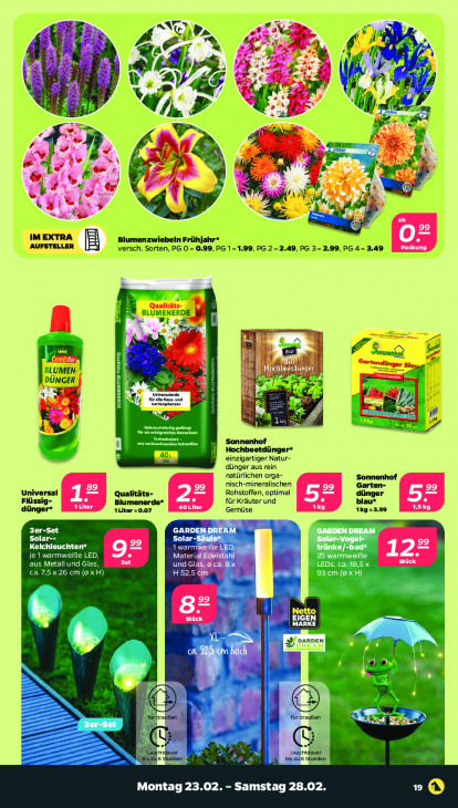 Bitte beachten Sie, dass dieser Text automatisch generiert wird und möglicherweise Fehler enthältJe AN tE © cvs, B | A + LA: % 2 ä D & o A 4 Ee a & n U 2$ Pr © w MAN FT u =? Euer + + 1] N MN l IMEXTRA Blumenzwiebeln Frühjahr* AUFSTELLER versch. Sorten, PG O = 0.99, PG 1=1.99, PG 2 = 2.49, PG 3- 2.99, PG 4- 3.49 3 BLUMENERDE 4 4 nn d = ER Ger BLUMEN, DÜNGER ere Fi à A je Gsranptanzen re æ Y EE Lin mn ( Dre 1#, ec " Sonnenhof Hochbeetdünger* einzigartiger Natur- dünger aus rein natürlichen orga- Sonnenhof nisch-mineralischen Garten- Uni rsal Qualitäts- Rohstoffen, optimal dünger Flüssig- Blumenerde* für Kräuter und blau* dünger* Aliter =0.07 Gemüse 1Kg=3.99 m. 3er-Set GARDENDREAM LU Solar-- Solar-Säuler Solar-Vogel- Kelchleuchten* tu “ tränke/-bad* je 1 warmweiïfe LED, Materi: PEN UNE a Metall und Gla; und Gl LEDs, ca. 18,5 x a.7,5 n (0 x H) LEE 93 cm (oxH) en | EIGEN BP in Ca Ez e füraraen P) 3er-Set en \ 1. den Montag 23.02. - Samstag 28.02. ©
