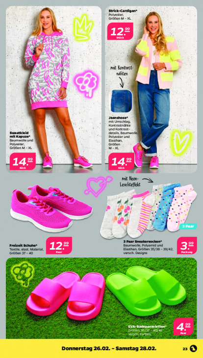 Bitte beachten Sie, dass dieser Text automatisch generiert wird und möglicherweise Fehler enthältStrick-Cardigan* Polyester, ie ® ‚Größen M- XL = = PA a > (a 5 ie M Ne N mit: Kontrast: nähten | KS / A Jeanshose* mit Umschlag, Kontrastnähte und Koritrast- 4 Sweatkleid 3 details, Baumwolle; mit Kapuze* Polyester und Baumwolle und Elasthan, Polyester, ‘Größen GrôBen M - XL M-XL F mit Neon- TK Leuchteffekt Ss zu = as a 3 Paar Sneakersocken* Freizeit Schuhe* Baumwolle, Polyamid und Textile, elast. Material, Elasthan, Größen 35/38 - 39/42, ‚Größen 37 - 40 versch. Designs a I EVA-Bädepantoletten* (EEE EN NR en Donnerstag 26.02. - Samstag 28.02. 3 ©
