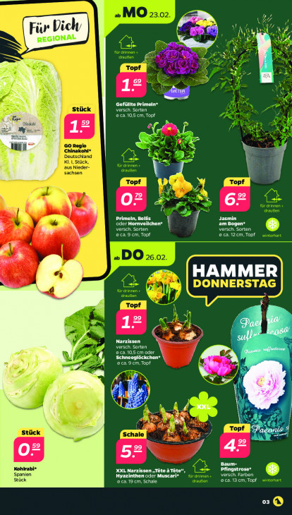 Bitte beachten Sie, dass dieser Text automatisch generiert wird und möglicherweise Fehler enthältWG 9% INA ir Dich Ho REGIONAL pd Ren 4 % È x Z AH $ \ 2 | * Gefüllte Primeln* Ne ch) 9 ca.10,5 cm, Topf “© hl 59 if ar I EN Ser 1 î 5 £ À | d À LL 6 3 | e Primeln, Bellis Jasmin oder Hornveilchen* 1 am Bogen* 5, +" MCE Cu) versch. Sorten * 0ca.9 cm, Topf, 0 ca. 12cm, Topf Fe y ee HAMMER 4 I en a Narzissen Ne ch) AT EMT wad Schneeglöckchen* T 4, 0ca.9 cm, Topf DI yy EG % qe N 7 >. #4 Ne 7 99 kh = Baum- Spanien Kohlrabi* XXL Narzissen „Tête à Tête“, NÉE EU) Pfingstrose* * Stück Hyazinthen oder Muscari* o ca. 13 cm, Topf 9 ca. 19 cm, Schale 03